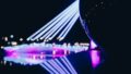 この広場では、シャンパンゴールドのLEDライトが広範囲にわたって設置され、水辺との反射が美しく幻想的な空間を作り出します。